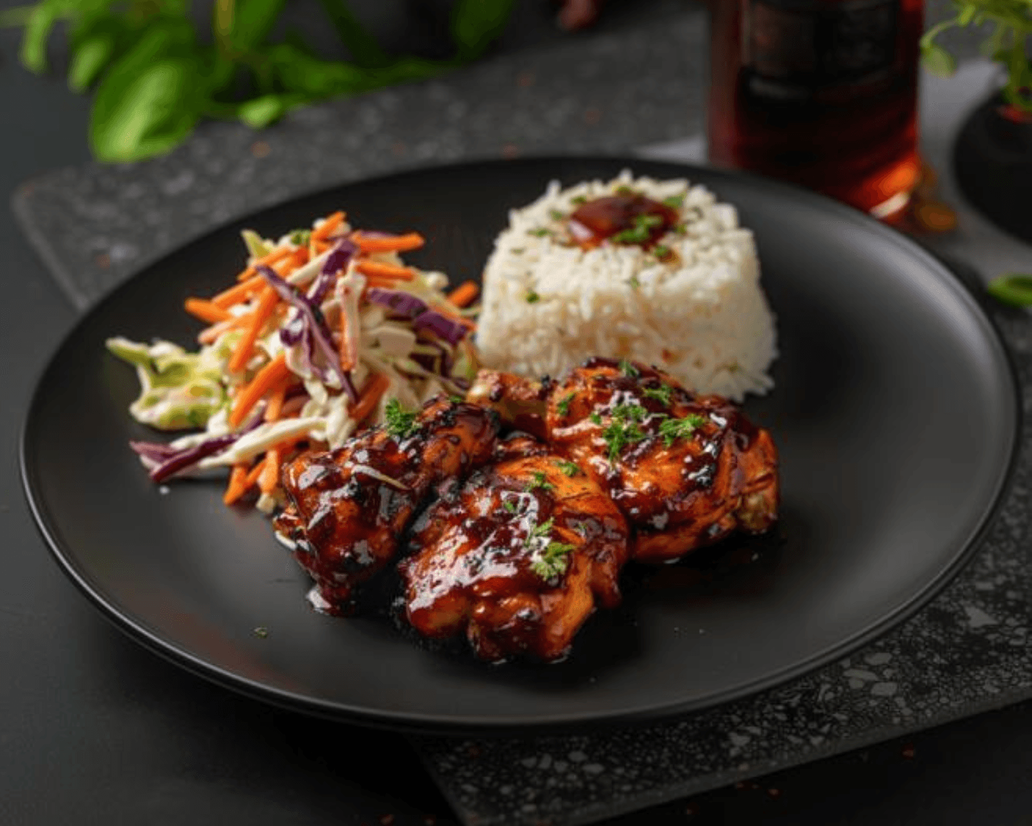Grilled to perfection, the chicken is juicy and full of flavor, complemented by a side of our coconut-infused rice and peas, providing a soothing balance to the tangy, savory BBQ sauce.